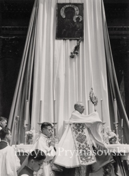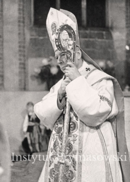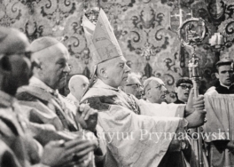 Ks. Prymas Stefan Wyszy?ski przewodniczy uroczystej mszy ?wi?tej koncelebrowanej w katedrze warszawskiej w okazji jubileuszu 25-lecia Prymasostwa.