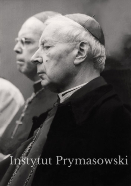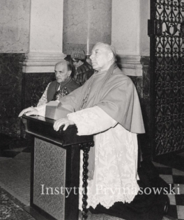 Ks. Prymas Stefan Wyszy?ski i ks. inf. Rorter podczas obrz?du po?wi?cenia górnej zakrystii katedry gnie?nie?skiej.