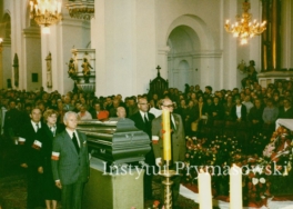 Procesyjne przeniesienie trumny ks. Prymasa Stefana Wyszy?skiego z ko?cio?a seminaryjnego na pl. Zwyci?stwa. Kondukt prowadzi ks. kard. Agostino Casaroli.
