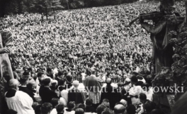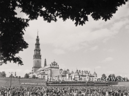 Po zakonczeniu uroczystosci na szczycie obraz M.Bozej wraca do kaplicy.Za obrazem w otoczeniu duchowienstwa Kard. S.Wyszynski.