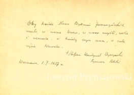 Powitanie prymasa S.Wyszynskiego przez przedstawicieli dzieci.Chlopiec w stroju "czwartakow"